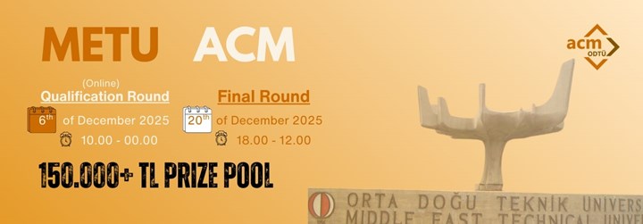 Organized by METU ACM, AlgoMETU’26 invites university students to compete in Turkey's most attended algorithm contest. This year, participants will challenge themselves to win a share of the 150,000 TL prize pool.